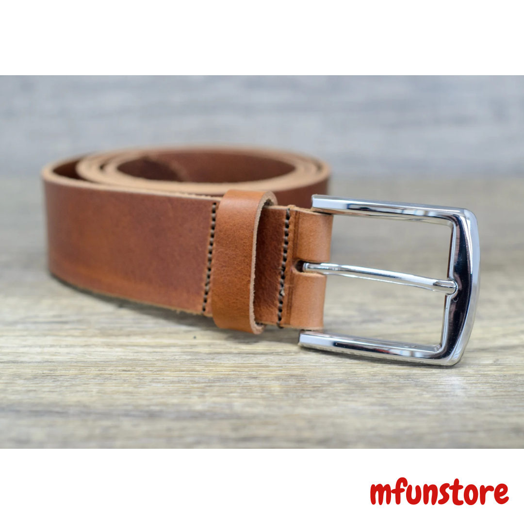 40mm Full Grain Men Handmade Buffalo Thick Leather Classy Belts Tan