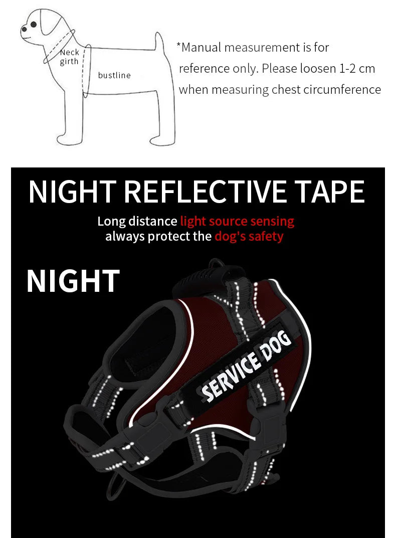 Service Dog Chest Harness No Pull Dog Hook Suitable Large Dog Vest Style Walking Rope Control Dog Strap Accessories Prevent Loss