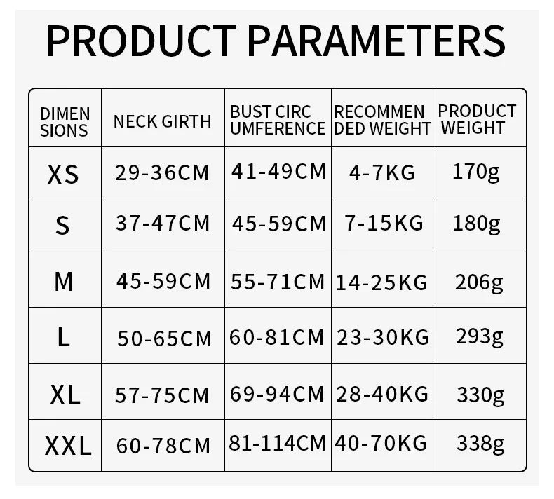 · Note: Pls don't forget to measure your dog's chest size before you place the order, thanks!